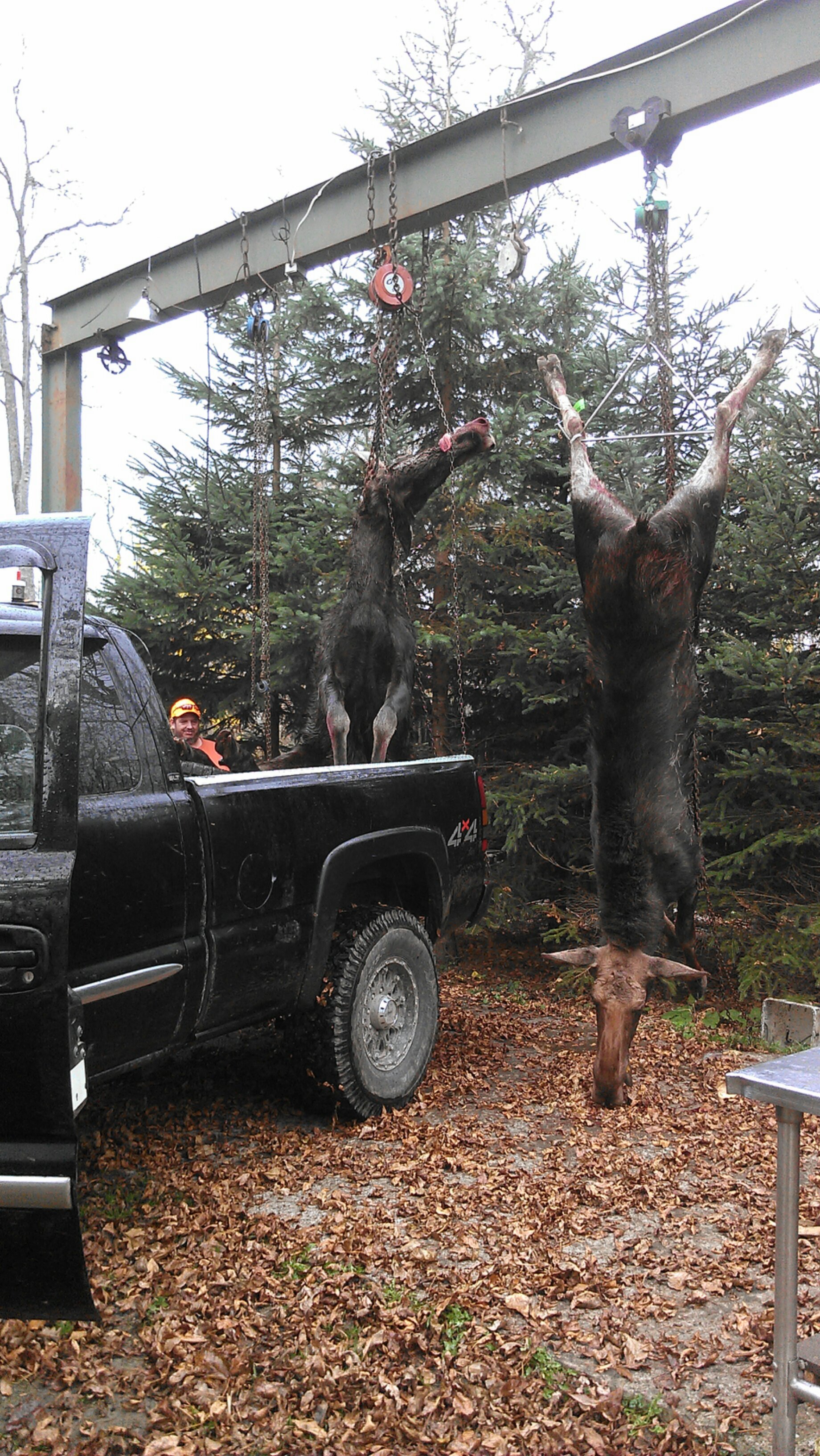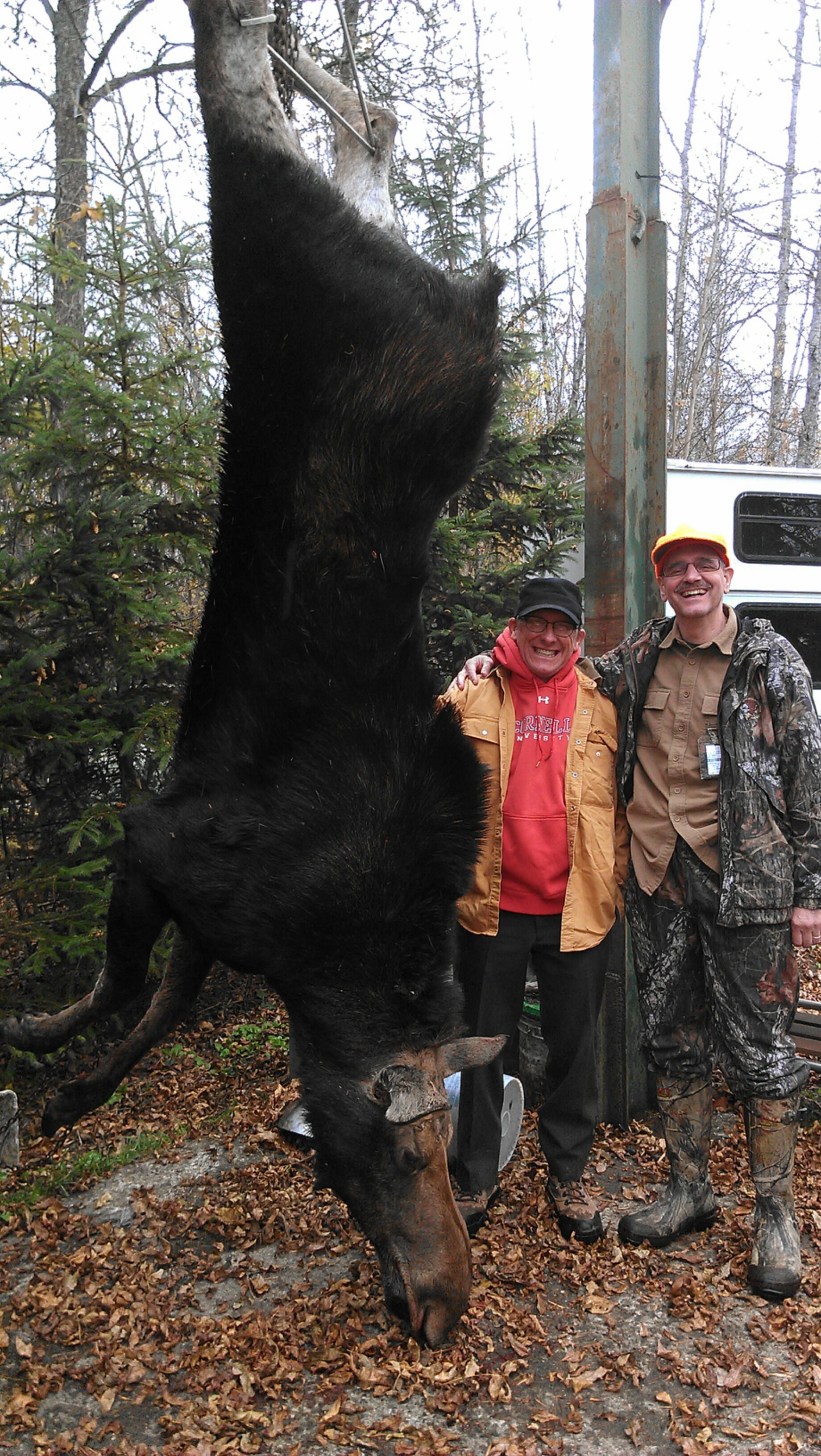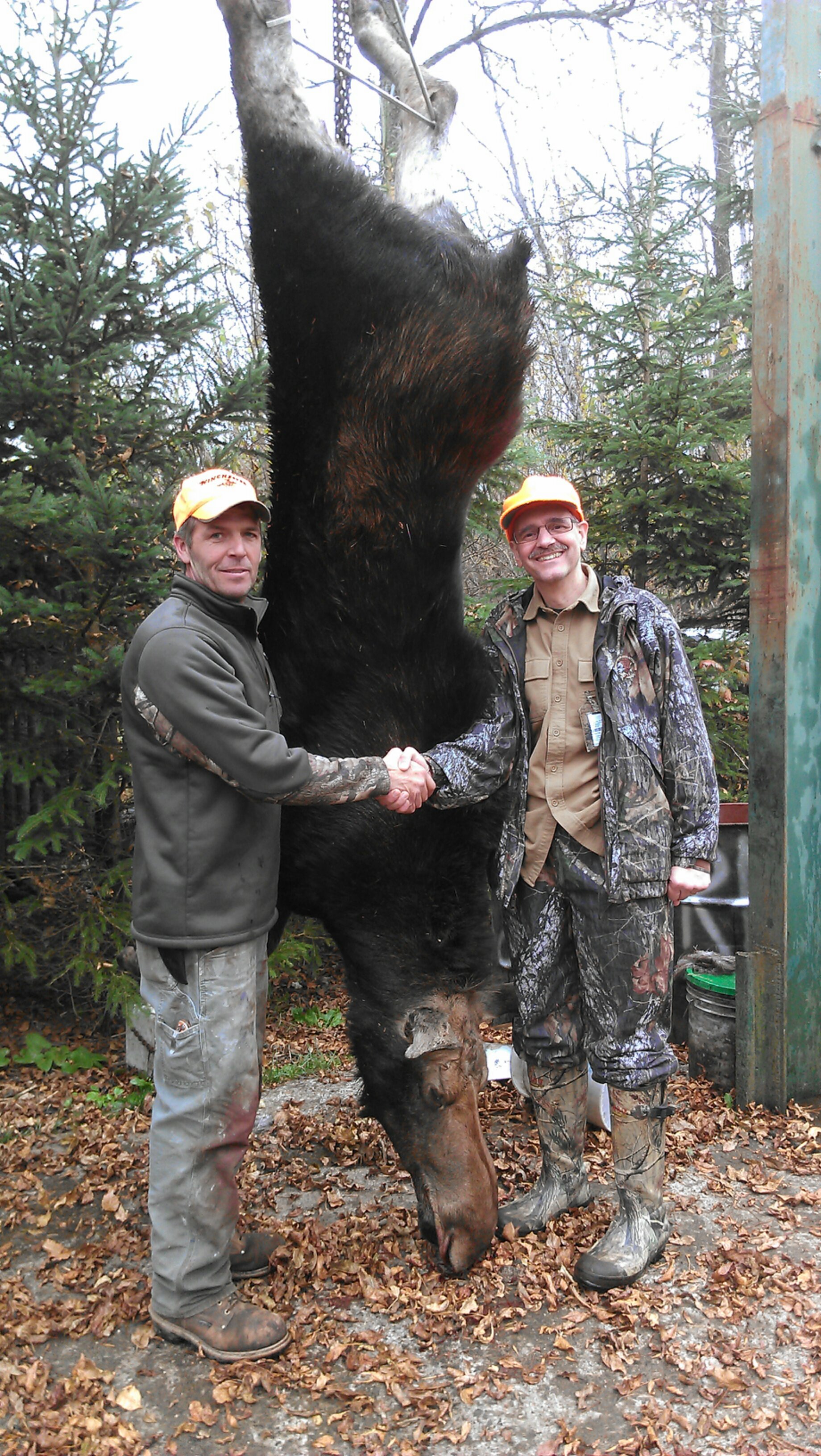 On the left is a moose taken early this morning by a friend of Mike’s (nephew to Ed and Marion). The right is a moose taken by Guide Chris’s (another nephew) hunter this morning! Chris is pictured below with the shooter. As well as a picture of the shooter and his sub-permittee.